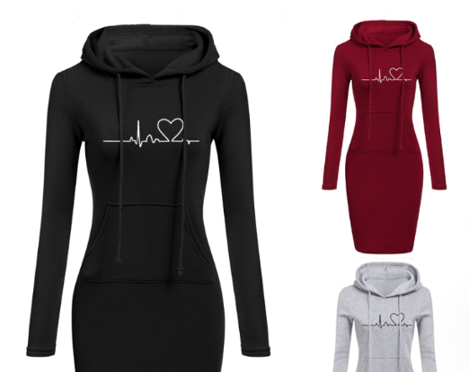 Women's Long-Sleeved Heartbeat Hoodie Dress